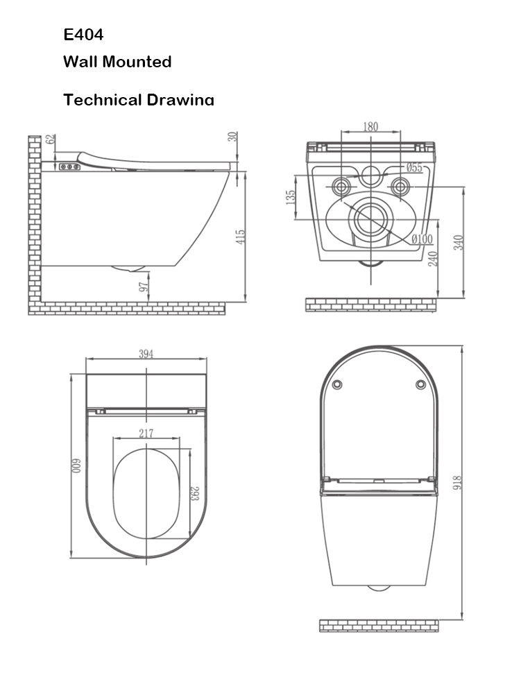 Унитаз Oceanwell E404 с двойным смывом и стеклянным бачком для эффективного использования воды, особенности: