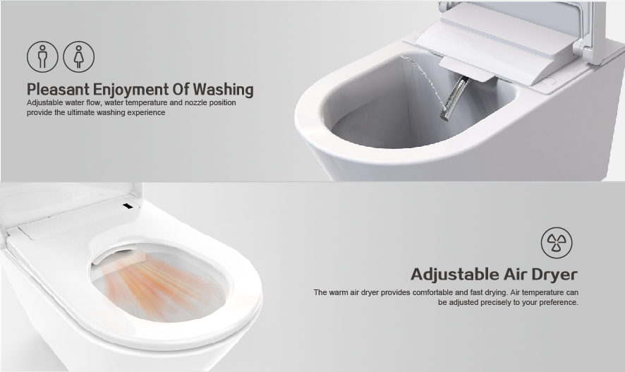 Благодаря тому, что вся электроника встроена непосредственно в чашу унитаза, умный унитаз oceanwell E402 устраняет необходимость в громоздких внешних блоках. Попрощайтесь с традиционными холодными фарфоровыми сиденьями и поприветствуйте компактный и гигиеничный комфорт – и все это с экономией до 30% места в ванной комнате. Наслаждайтесь современной гигиеной и комфортом в ванной комнате.